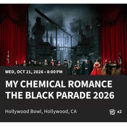 2 Tix MCR at Hollywood Bowl 10/21/2026$300Long Beach, CA