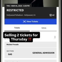 RESTRICTED TICKETS FOR SALE$160San Pedro, CA