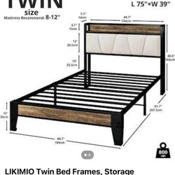 LIKIMIO Twin Bed Frames, Storage Headboard with Charging Station, Solid and Stable$100Los Angeles, CA