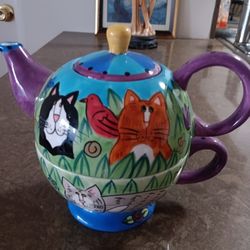 Vintage Catzilla Ceramic Teapot Candace Reiter & Mug Cats Blue Purple Cats$27Los Angeles, CA