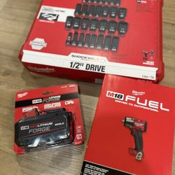 Milwaukee 1/2 DRIVE. IMPACT Socket Kit. 1/2 Mid -Torque Impact.. FORGE battery 8-0.. $460 $460West Covina, CA