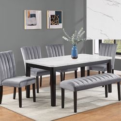 FAUX MARBLE DINING TABLE WITH CHAIRS AND BENCH $650Corona, CA