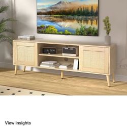 Boho TV Stand for 65 Inch TV,Entertainment Center with Adjustable Shelf,Rattan Console with 2 Cabinets,Media Console, 5 Solid Wood Feet, 2 Cord Holes,$100Torrance, CA