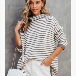 Women's Khaki Striped Knit Turtleneck Loose Pullover Sweater Long Sleeve$20Norwalk, CA