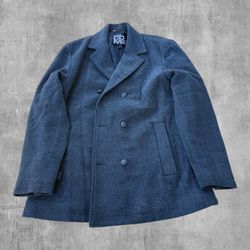 Superdry Premium Wool Peacoat Mens Large Navy Blue Quilted Sleeves Heavyweight $125Laguna Beach, CA