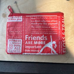 This is a Lululemon red and white manifesto print zipper pouch. $20Santa Ana, CA