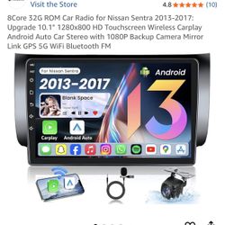 8Core 32G ROM Car Radio for Nissan Sentra 2013-2017: Upgrade 10.1" 1280x800 HD Touchscreen Wireless Carplay Android Auto Car Stereo with 1080P Backup $140Irvine, CA