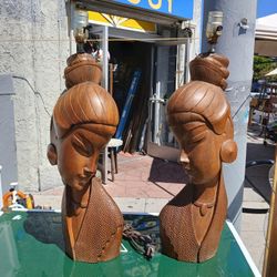 Vintage Solid Wood Handcarved Asian/ Balinese /Indonesian Woman Sculpture Female Bust lamps$180Los Angeles, CA