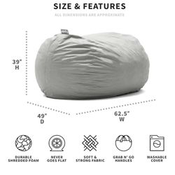 5FT Giant with Memory Foam Filled, Comfy Bean Bag Chairs$35Huntington Beach, CA