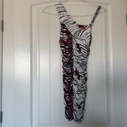 Brand New One-Shoulder Ruched Bodycon Dress with Chain Strap – Zebra & Paisley Print (S)$60Los Angeles, CA