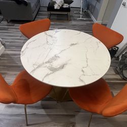 5 Piece Wayfair Dining Set FOR SALE - Round Marble Design Dining Table & 4 Orange Velvet Chairs - Pickup Only$400Los Angeles, CA