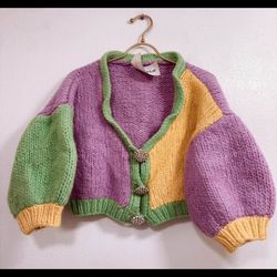 Vintage Hilary Smith Hand Loomed Patchwork Chenille Cardigan Crocodile Buttons$150Monterey Park, CA