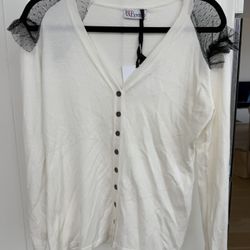 RED Valentino Ivory Virgin Wool Cardigan Size 40 Black Tulle Shoulder Ruffle Tags$98Los Angeles, CA