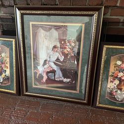 Vintage Home Interiors Wall Art Set (3) | Ornate Gold Frames | Classic Floral & Piano Scene$200City Of Industry, CA