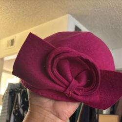Authentic Vintage 1950s–60s Fuchsia Wool Felt Hat with Sculpted Rosette – Statement Mid-Century Hat$45Los Angeles, CA