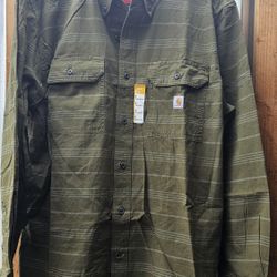 Carhartt Long Sleeve Shirt SZ L, Loose fit Men's Original Fit Chambray Plaid Green