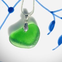 Vibrant Green Sea Glass Heart On Sterling Silver Necklace $50Pasadena, CA