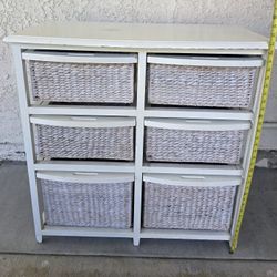 White Wooden 6 Drawer Wicker Basket Farmhouse Storage Shelf$20Diamond Bar, CA