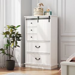 51.2'' Farmhouse Drawer Chest with Sliding Door, Multi-Storage Drawer Dresser with 5 Drawers and Storage Shelf, Tall Chest of Drawers with Adjustable $250Pasadena, CA