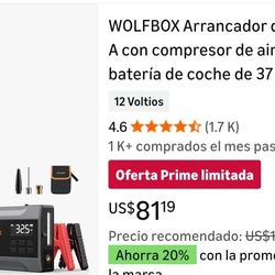 WOLFBOX 4000A Jump Starter with 160 PSI Air Compressor, 12V Car Battery Booster, 65W Fast Charging, 24000mAh Portable Tire Inflator, LED Display$85Costa Mesa, CA