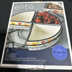 Gibson Elite 5 Pc. Luxembourg Stoneware 4 Sectional Tray Set with metal rack, New$20Cohasset, CA