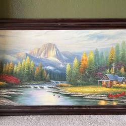 Large W. Jenkins Original Oil Painting - Serene Mountain River Cabin (41" x 30")$150Magalia, CA
