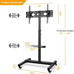 Mobile TV Stand Rolling TV Cart Floor Stand with Mount on Lockable Wheels Height Adjustable Shelf for 32-75 inch Flat Screen or Curved TVs$85Fontana, CA