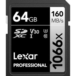 Lexar 64GB Professional 1066x SD Card [NEW], UHS-I, C10, U3, V30, Full HD, 4K, Up To 160MB/s Read SDXC Memory Card, for DSLR & Mirrorless Cameras (LSD$20Irvine, CA