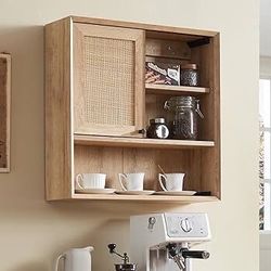 Natural Rattan Bathroom Wall Cabinet - Modern Boho Medicine Cabinet with Sliding Door & Adjustable Shelves, Storage Cabinet Wall Mounted for Kitchen, $40Ontario, CA