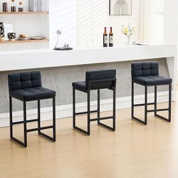 Bar Stools Set of 3, Upholstered Faux Leather Counter Height Barstools with Low Back and Thickened Metal Legs, Modern Bar Chairs for Kitchen Island, B$100Arcadia, CA