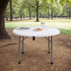 48" Round Folding Table 4 Feet Plastic Bi-Folding Commercial Dining Event Table for Indoor Outdoor Camping Picnic Party, White$90La Habra Heights, CA