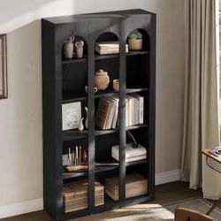 71 in. Tall Black Wood 5-Shel f Etagere Standard Farmhouse Corner Book case Home Office Display Organizer$100Upland, CA
