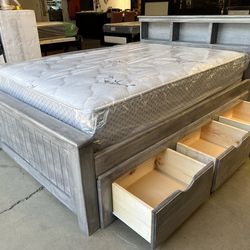 Solid Wood Queen Bed w Drawers and Mattress$740Downey, CA