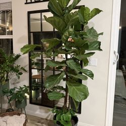 Beautiful Real Live 6’10” feet tall Fiddle Leaf Fig Plant Tree With Charcoal Plastic Pot With Pothos Plant Growing Inside$180Riverside, CA