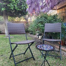 (2 Pcs) Hampton Wicker Patio Folding Chair, Brown + (1) Round Mosaic Folding Table$90La Habra Heights, CA