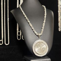 Italian silver .925 Milano chain with silver centenario and Versace bezel or nugget bezel $1,000Fontana, CA