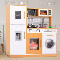 Pirecart Children's Play Kitchen, Wooden Pretend Chef Kitchen Set for Toddlers with Simulated Sounds, Sink, Stove, Microwave, Washing Machine, Gifts $58Ontario, CA
