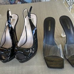 Dos pares de zapatillas size 7 1/2 las negras y las trasparentes size 8 el precio es por los dos pares$25Riverside, CA