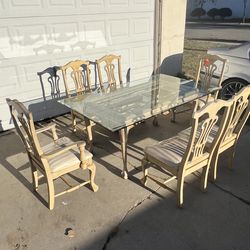 Vintage Wood Glass Top Dining Table Set 6 Chairs$80Fontana, CA