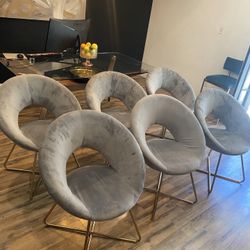 Black Round Dining Table + Light Gray Dining Chairs$360Irvine, CA