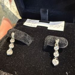 ❤️Sterling Silver Cubic Zirconia and Diamonds Dangle Earrings, Beautiful!/ Aretes Colgantes con CZ y Diamantes!👌🎁Post Tags: Aretes, pendientes$118Fullerton, CA