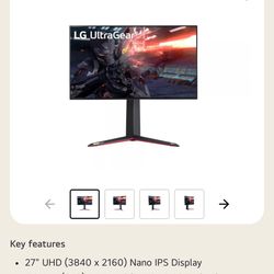 LG 27” UltraGear 4K UHD Nano IPS 1ms 144Hz G-Sync Monitor$650Riverside, CA