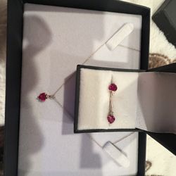 10K Gold Ruby Necklace & Earrings Set – Mother’s Day Gift 💝$400Lake Forest, CA
