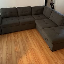 ✅️✅️4 pc Smoke grey fur like corduroy fabric sectional sofa with storage chaise and love seat and pop up sleep area in center USB charging✅️✅️$698Fullerton, CA