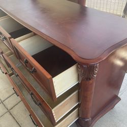 Dark wood (NOT COMPRESSED)dresser with a mirror, 6 Drawer Dresser And 2X Two Drawer Night Stand$350Highland Park, CA