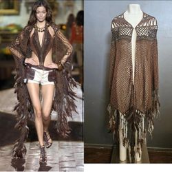 💥Roberto Cavalli Shawl Wrap With Leather & Feathers Made In Italy $2,500West Covina, CA