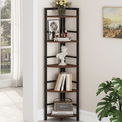 Walnut and Black Metal 5-Tier Corner Bookshelf Stand$50Orange, CA