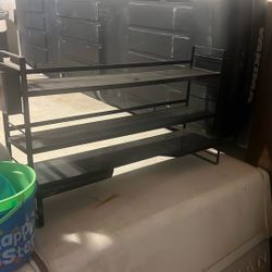 Black and brown corner shelf unit$15Costa Mesa, CA