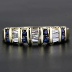 Vintage 14k Yellow Gold Diamond & Sapphire Anniversary Band / Wedding Ring $1,025Bellflower, CA