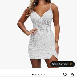 New Valentines White Dress Elegant Mini Open From Size Medium Stretchy White $25Riverside, CA